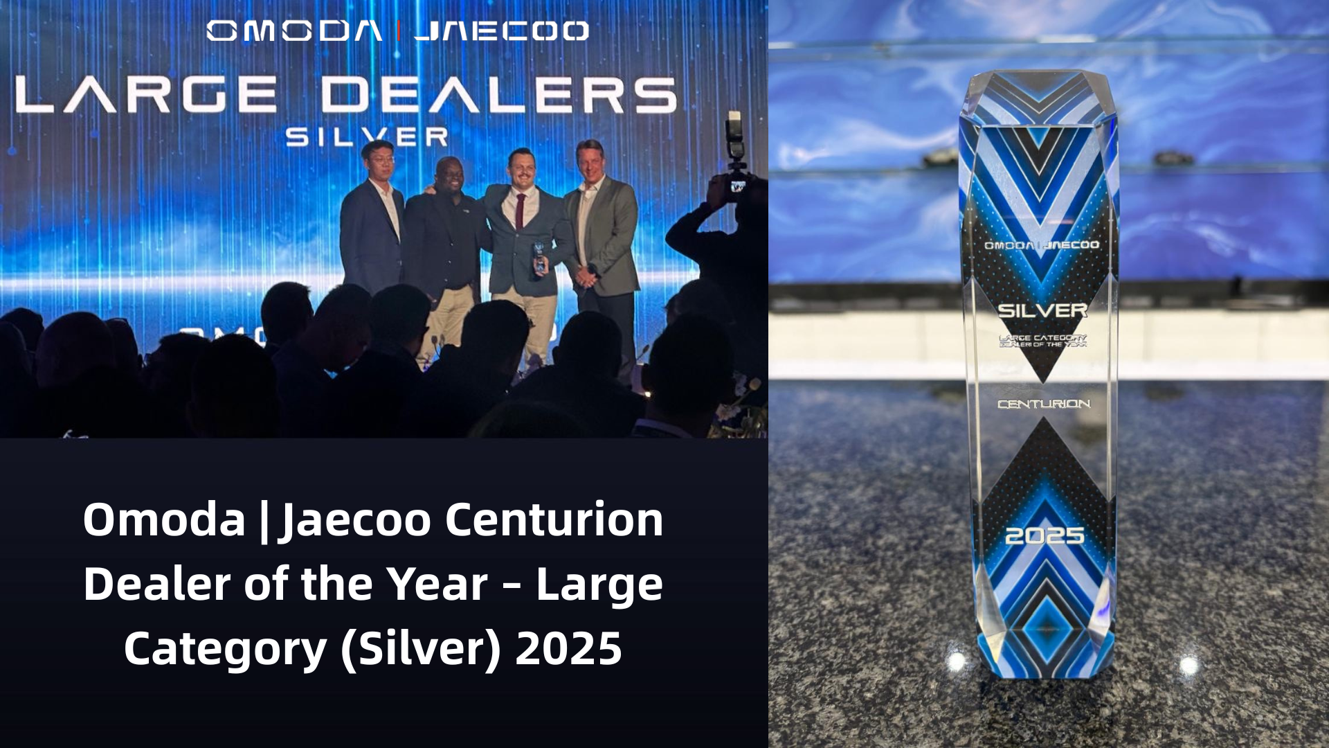 The Auto Investments Motor Group proudly congratulates the Omoda|Jaecoo Centurion dealership on winning the Dealer of the Year – Large Category (Silver) at this year's Annual Dealer Conference. This prestigious award highlights their outstanding performance, exceptional customer service, and dedication to excellence in the automotive industry.